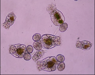 此時可將輪蟲成蟲平均分散到幾個繁殖皿或更換至較大培養桶重新開始繁殖培養。